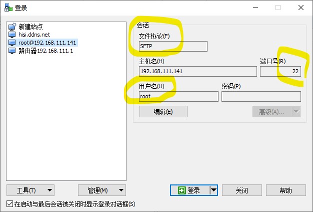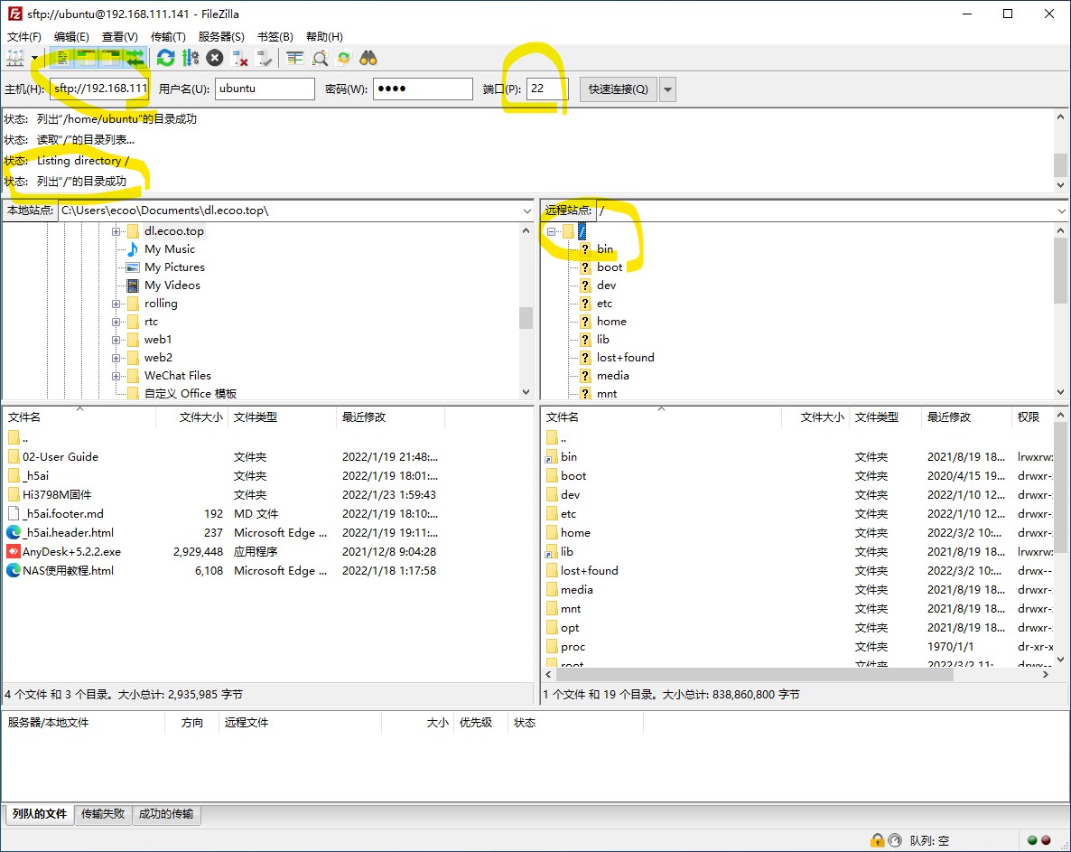 注意: FZ 选 22 端口已设置 SFTP 模式, 可访问根目录, 21 端口 FTP 模式则只能访问 /home 目录