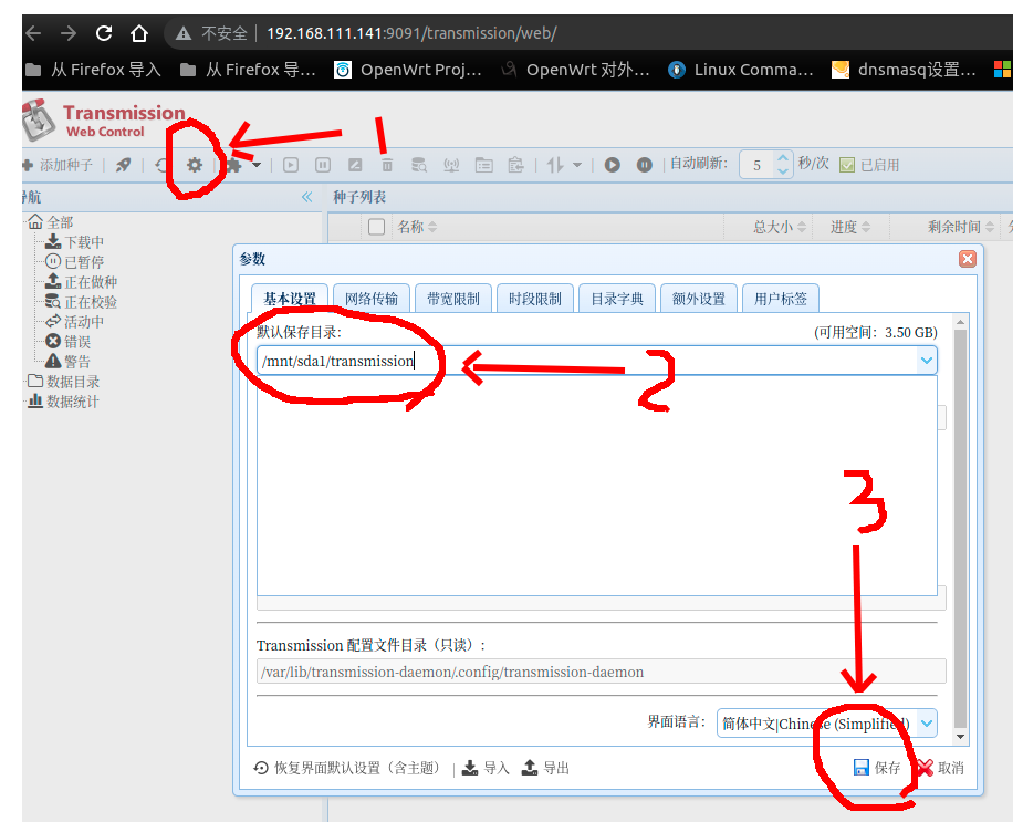 # 编辑配置文件: vi /etc/transmission-daemon/settings.json